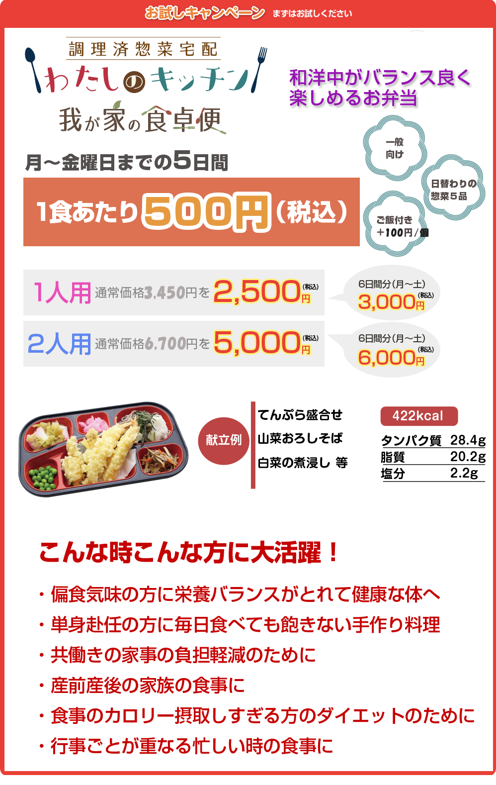 留守がちでお忙しいご家庭も、メニューを考える手間と買い物に行く手間が省けますね!